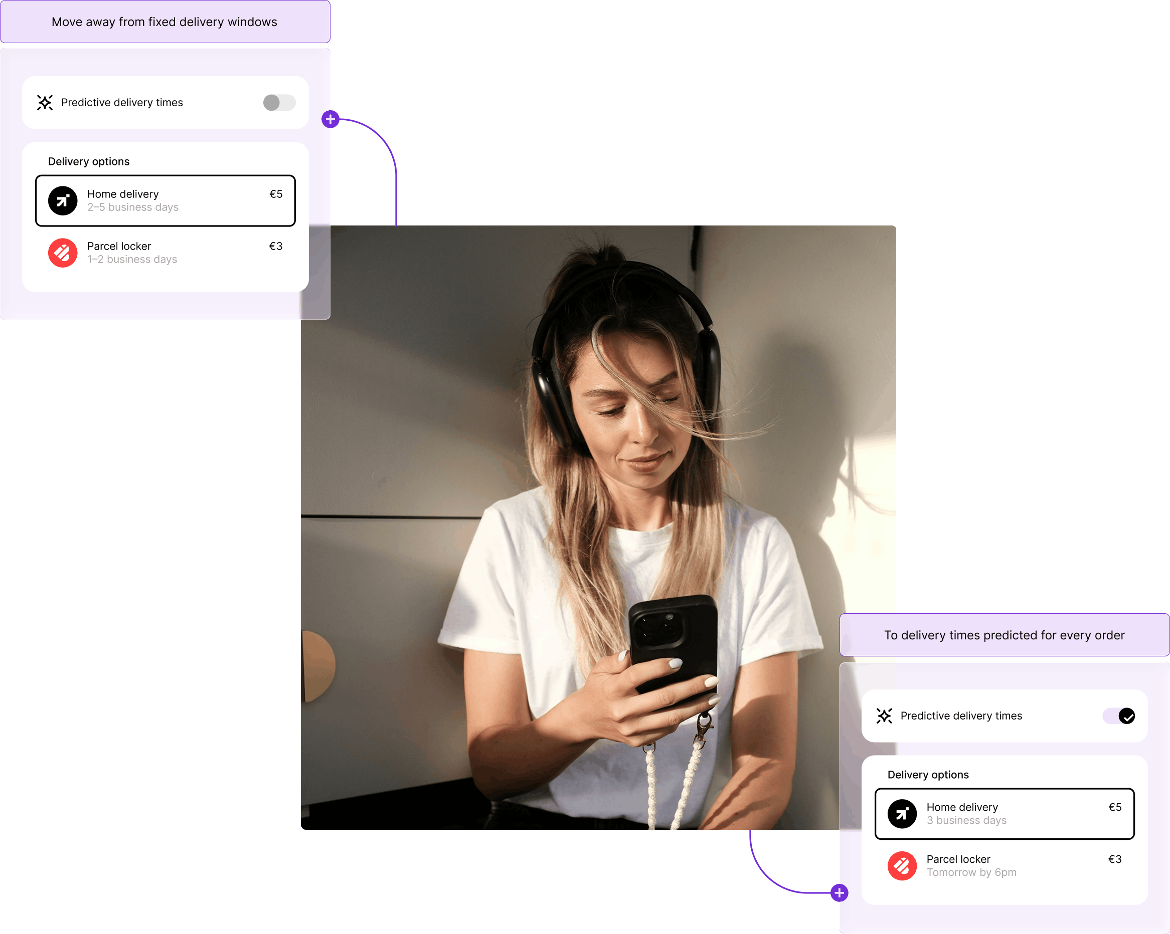 Each delivery promise is calculated from real performance data, replacing static windows with predictions that adjust automatically as conditions evolve. Fewer broken promises, higher conversion.